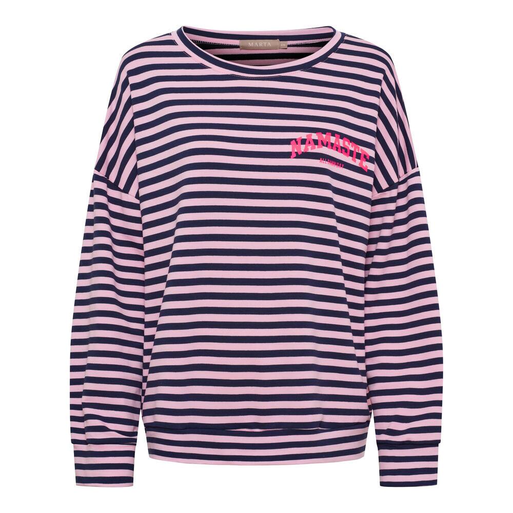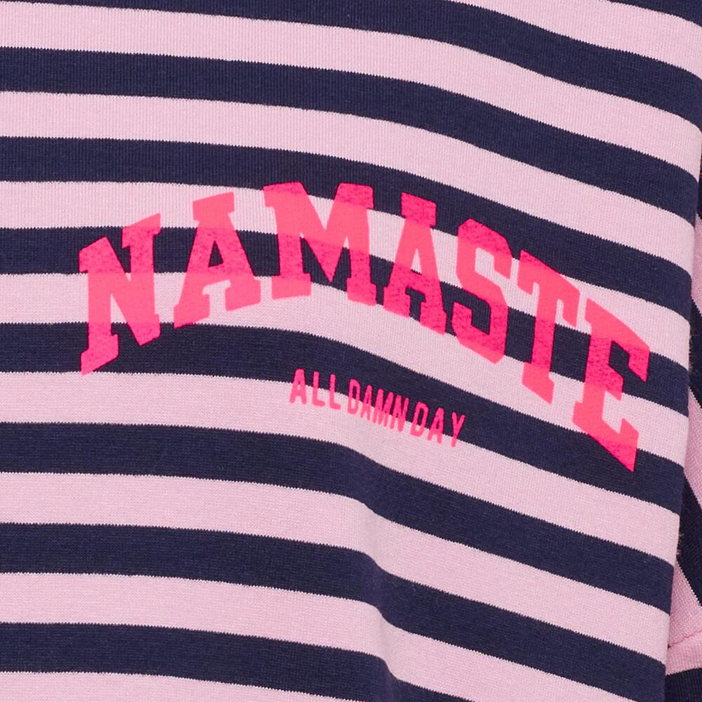 Cool og afslappet bluse fra Marta du Château i et moderne stribet design. Blusen er lavet med et iøjnefaldende “NAMASTE” print, der giver trendy twist.