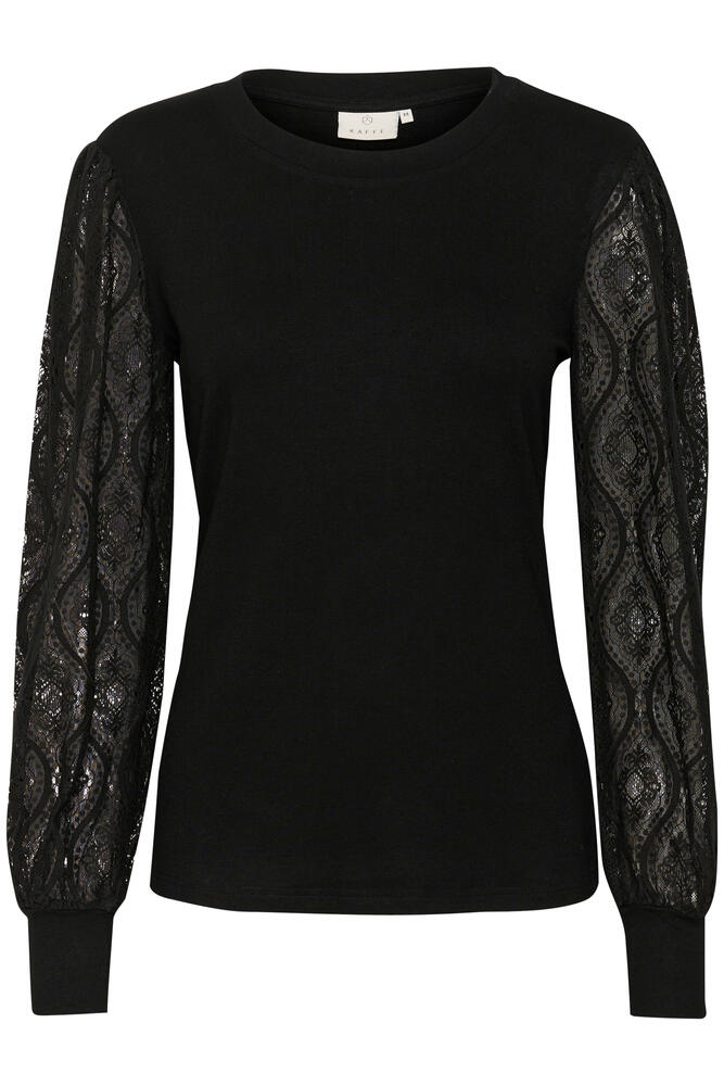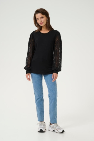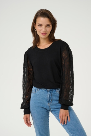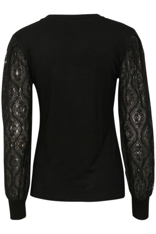 Blusen har rund hals, lange blondeærmer med manchetter og er fremstillet i 94% viskose, hvilket giver en dejlig blød og åndbar kvalitet.