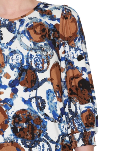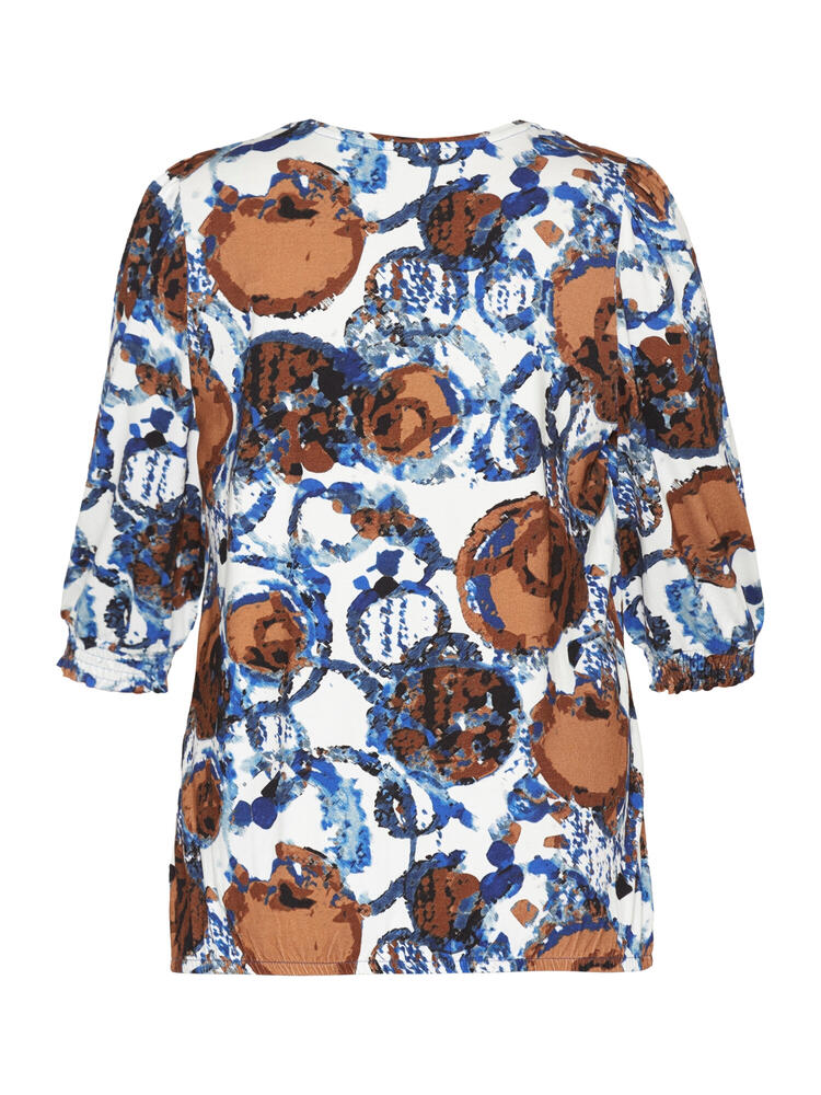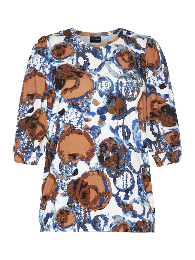 Bluse - 3/4 ærmet - Blå/Brun Mix - Brandtex