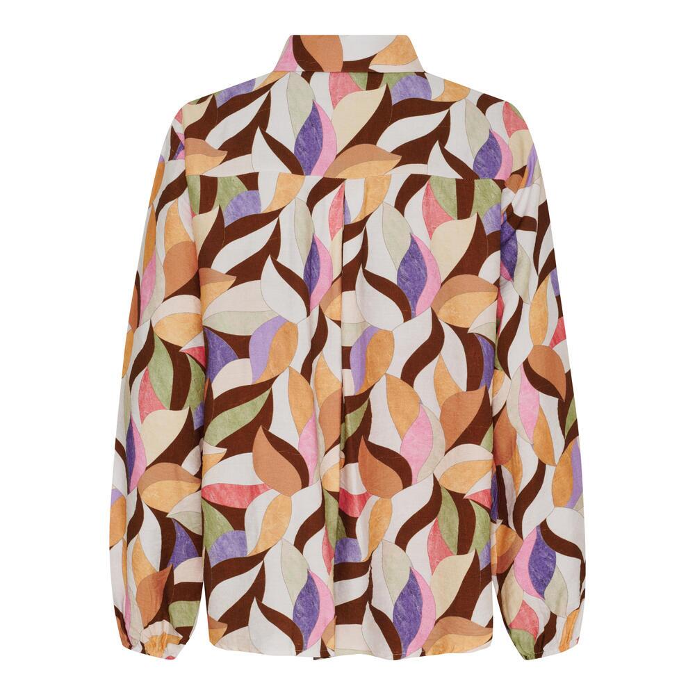 Skjorte fra Marta du Château med smukt, farverigt print i varme nuancer. Ærmerne har elastik som er perfekt til trække op for et mere afslappet look. Pasformen er klassisk og materialet er i en let kvalitet, som gør den perfekt til både hverdag og pænere brug og passer til sæsonens boho-stil.
