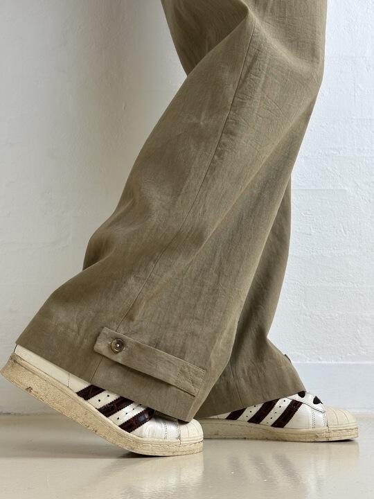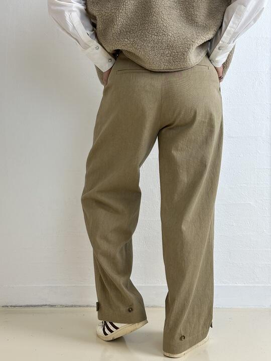 Bukser fra Gaspar er en moderne chinobuks som har frontlæg og lommer i siden, der er et lille stykke med elastik i linningen samt bæltestropper. Bukserne er bløde og falder naturligt og med den lille strop forneden og de to knapper kan man style bukserne på to forskellige måder.
