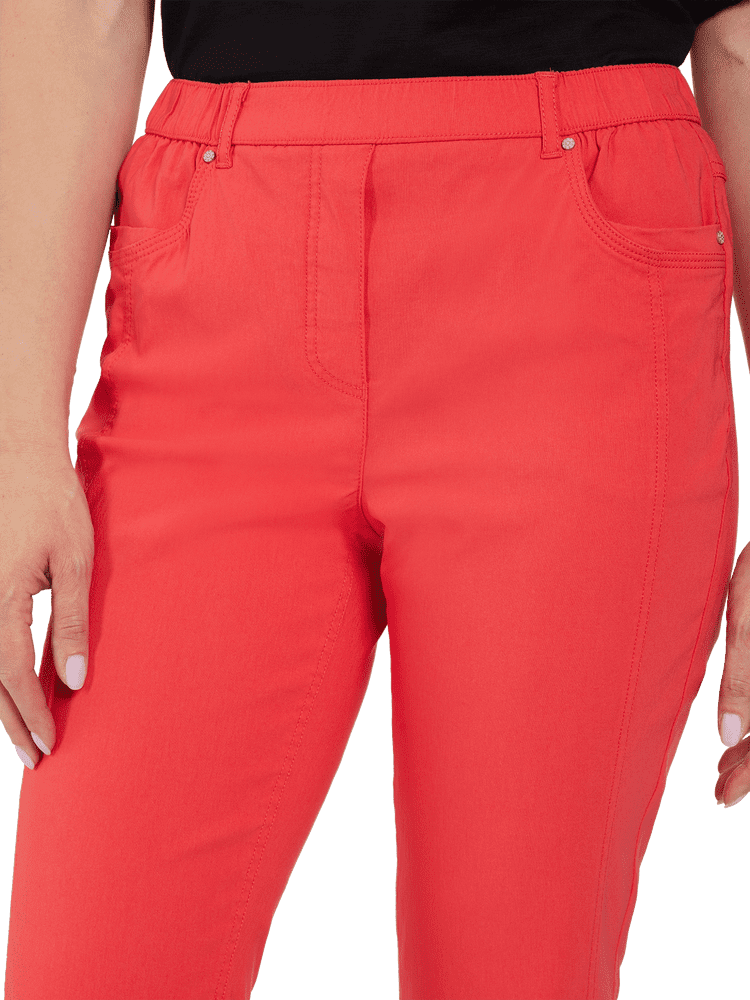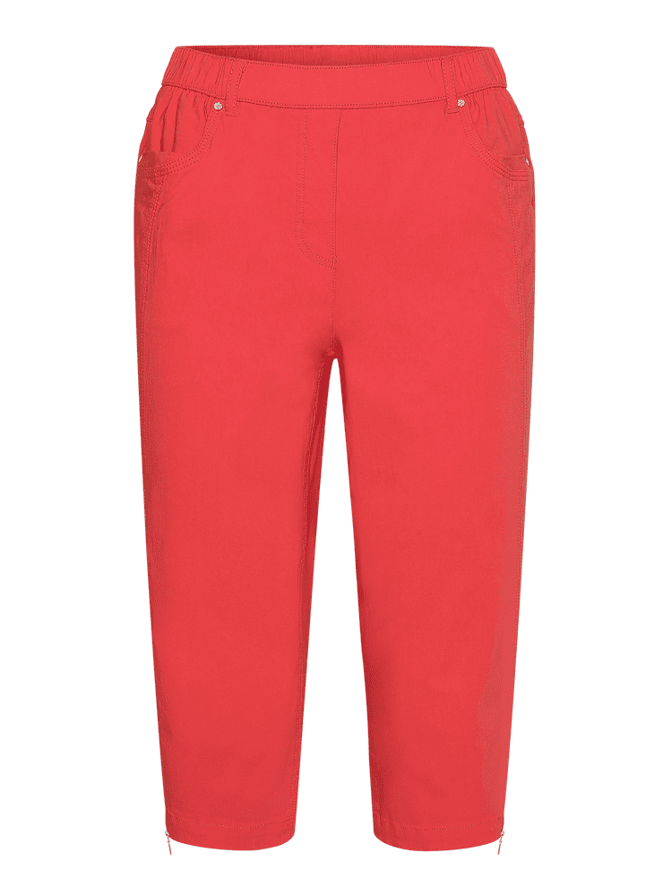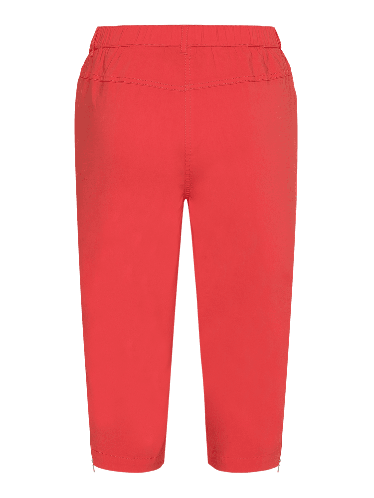 Smarte capribukser fra Brandtex i en flot rød farve, der giver dit outfit et friskt og sommerligt udtryk. Buksen har lynlås detalje ved benafslutningen,