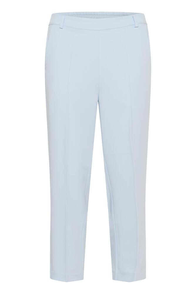 Smarte Bukser fra KAFFE i en elegant lyseblå nuance og et moderne cropped snit. Bukserne har elastik linning og figursyet pasform, der sikrer komfort, samt et stilrent look.