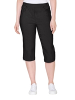 Fine og enkle capri bukser med elastik i linningen, lommer på fronten og lynlås detalje nederst på buksebenene.