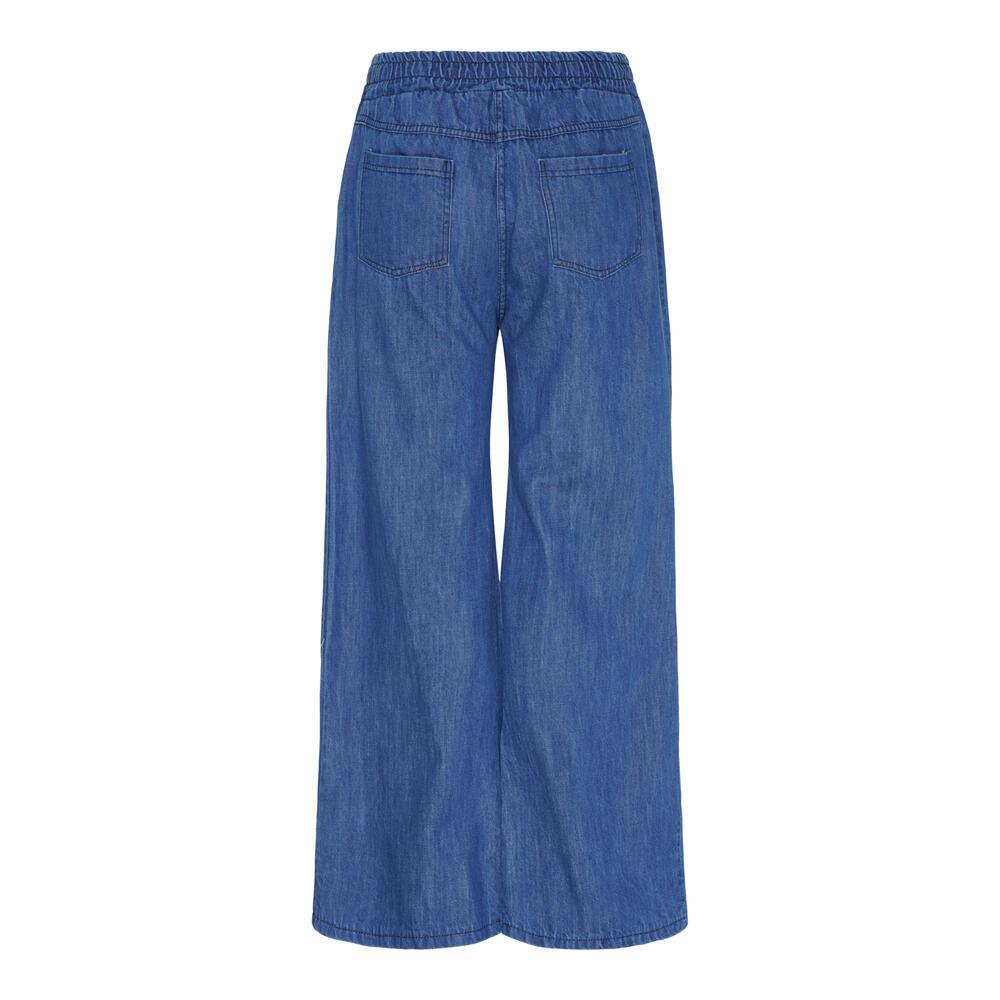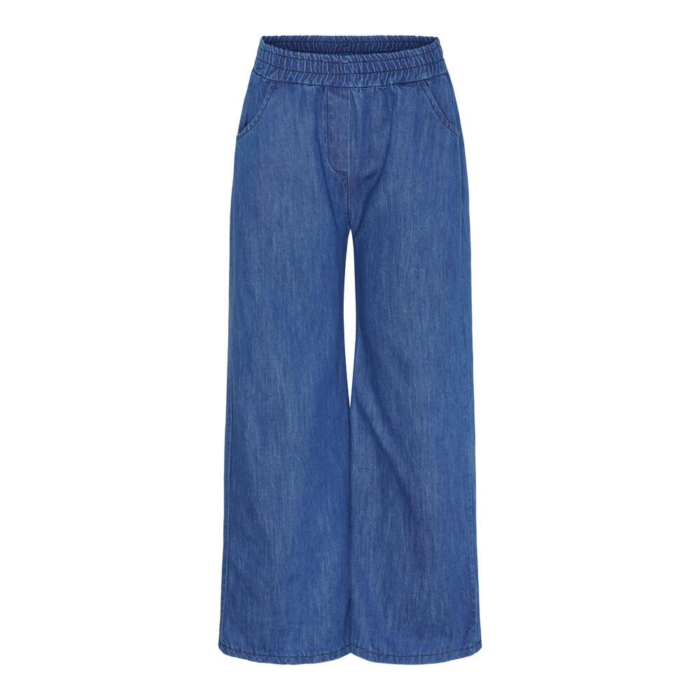 Stilrene bukser fra Marta du Château i et denimlook. Bukserne har vidde ben og elastiktalje, samt brugbare sidelommer, der sikrer komfort hele dagen.
