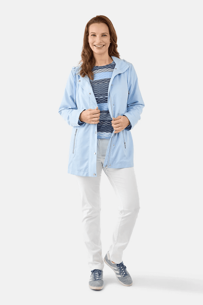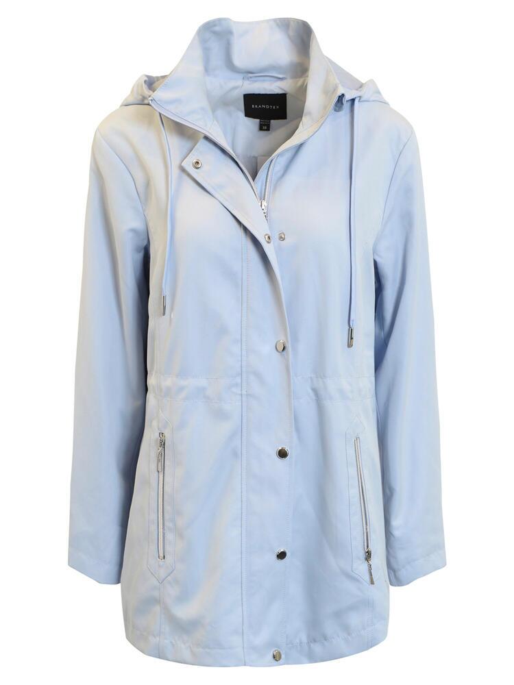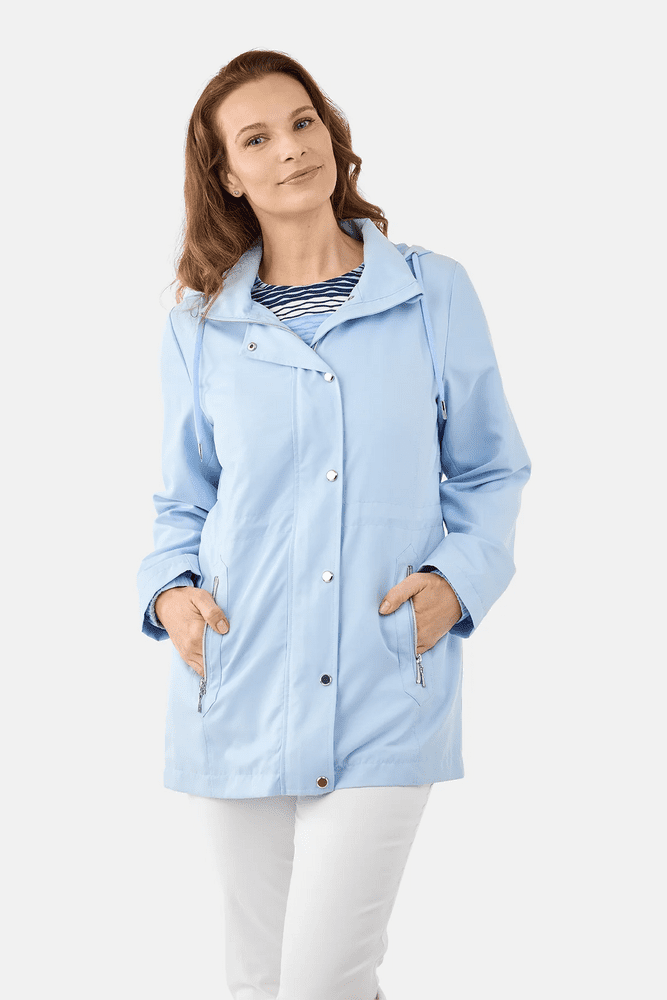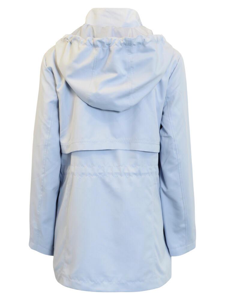 Jakke fra Brandtex i let og farverig lyseblå nuance. Jakken har skjult lynlåslukning med trykknapper, hætte med snøre og praktiske lynlåslommer. Den lette pasform og enkle design gør jakken ideel til hverdagsbrug.