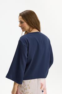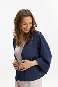 Jakke fra In Front i smuk navy nuance. Den er lukket med en trykknap, og har bredde 3/4 ærmer og er med en løs pasform. Den lette kvalitet gør den perfekt som et lag over både kjole, top eller bluse.