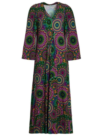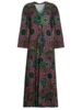 Kjolen har V-udskæring, 7/8 lange trompet ærmer samt lommer i sidesømmen