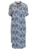 Kjolen har klassisk krave med et lille V-snit og korte ærmer med manchet og knap.