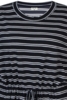 Kjolen har striber på tværs, lommer i sidesømmen og bindebånd i taljen.
