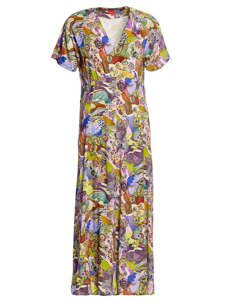 Elegant maxi Kjole fra du Milde med et smukt, kunstnerisk blomsterprint. Kjolen er derudover skabt med en fin V-hals, stiklommer og små læg under brystet, der giver mere plads, samt en let og flatterende pasform.