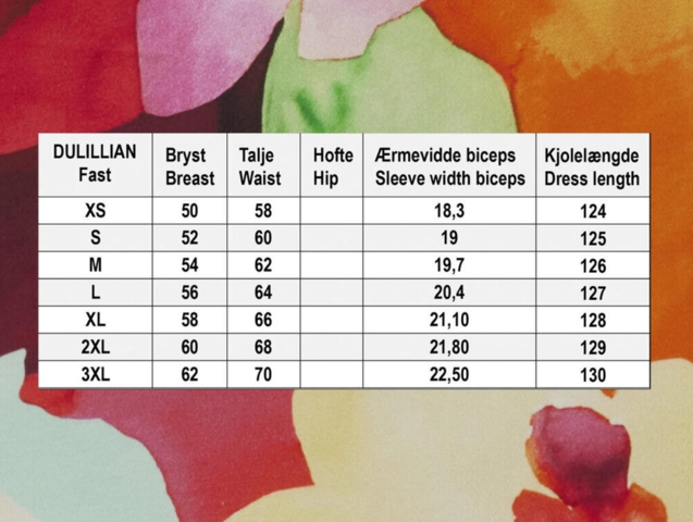 Kjolen er lang, har stiklommer i sidesømmen, er fremstillet i 100% viskose og har et smukt abstrakt blomstret mønster.