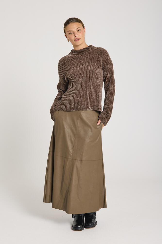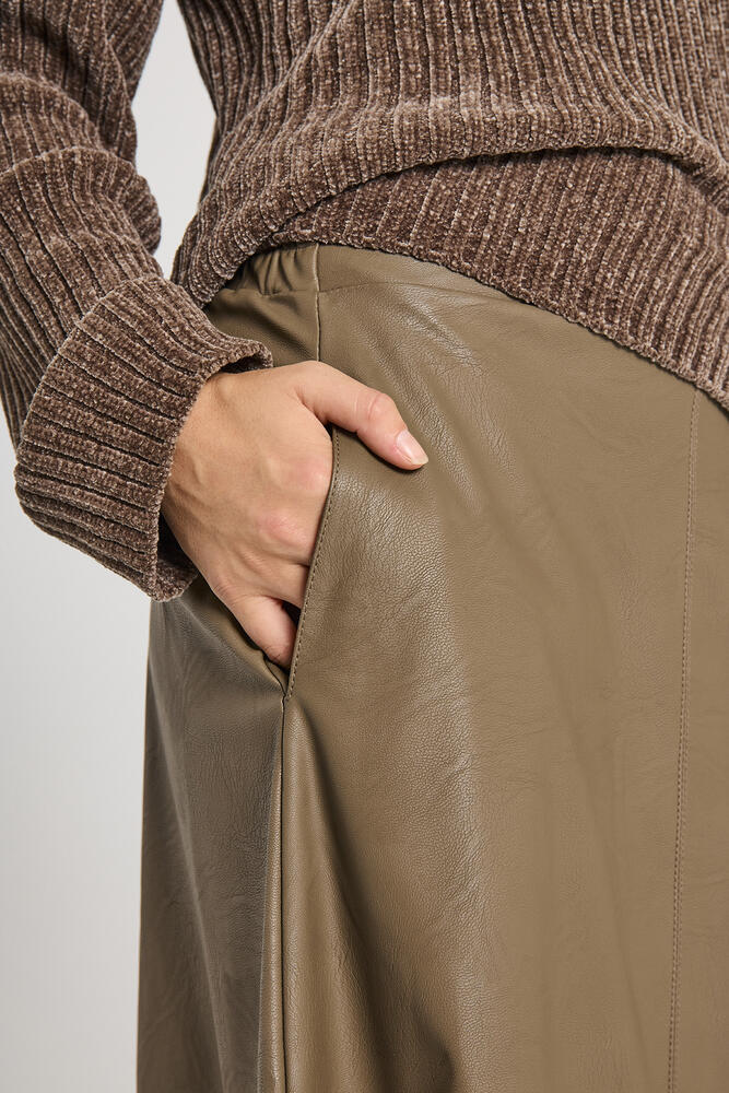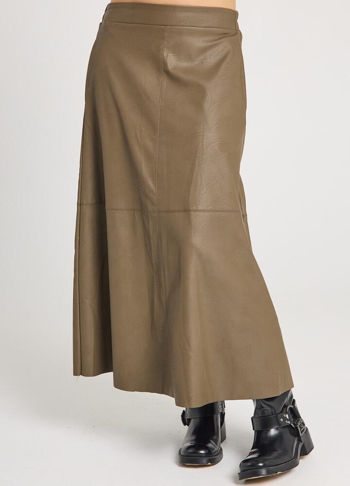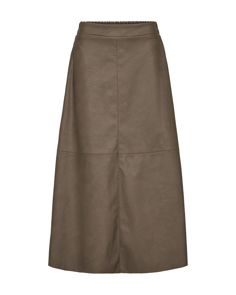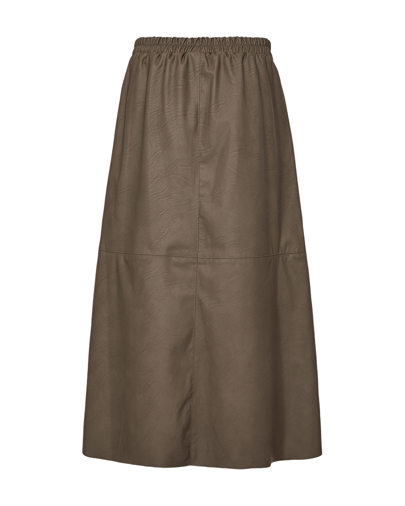 Rå og enkel nederdel i PU-læderkvalitet med elastik i taljen, sidelommer og flatterende A-facon.