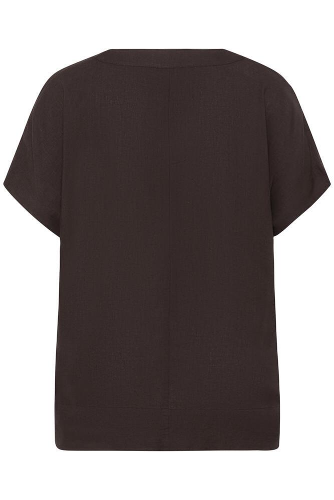 Elegant bluse i plussize fra KAFFE Curve i en flot mørkebrun farve. Blusen er lavet med en fin V-udskæring, korte ærmer og i en let og luftig pasform.