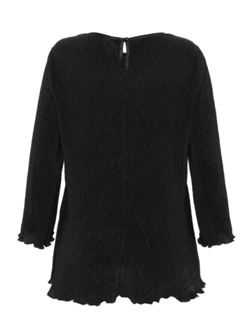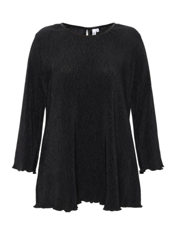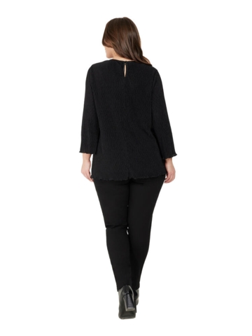 Enkel og elegant bluse med let skinnende stof, rund hals og 3/4 lange ærmer, perfekt til festlige lejligheder.