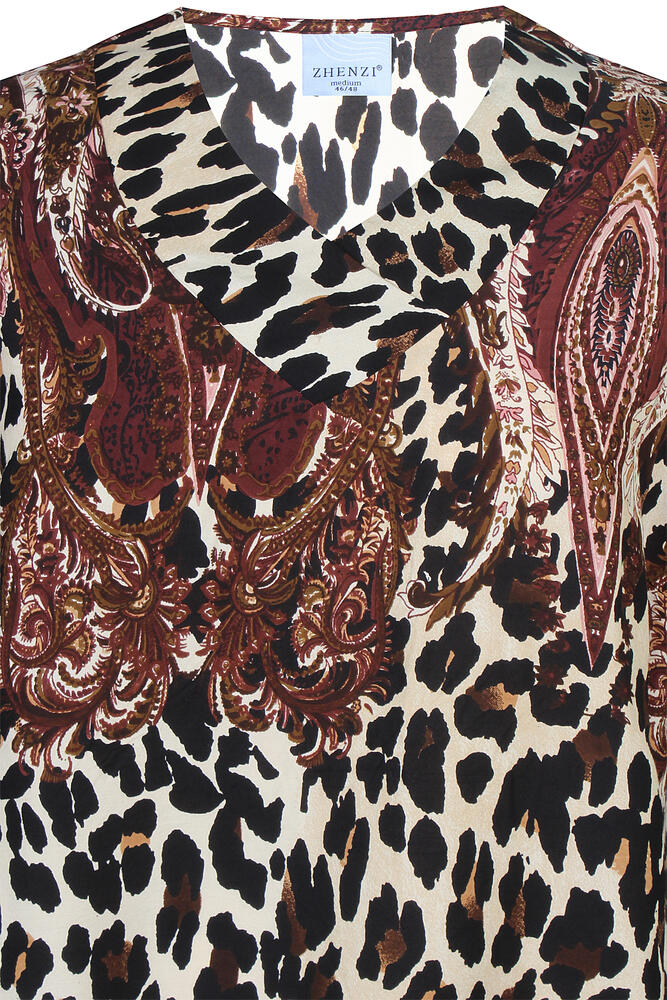 Blusen har et skønt mix af paisley mønster og dyreprint, samt er fremstillet i 100% viskose, hvilket giver en dejlig let og åndbar kvalitet.
