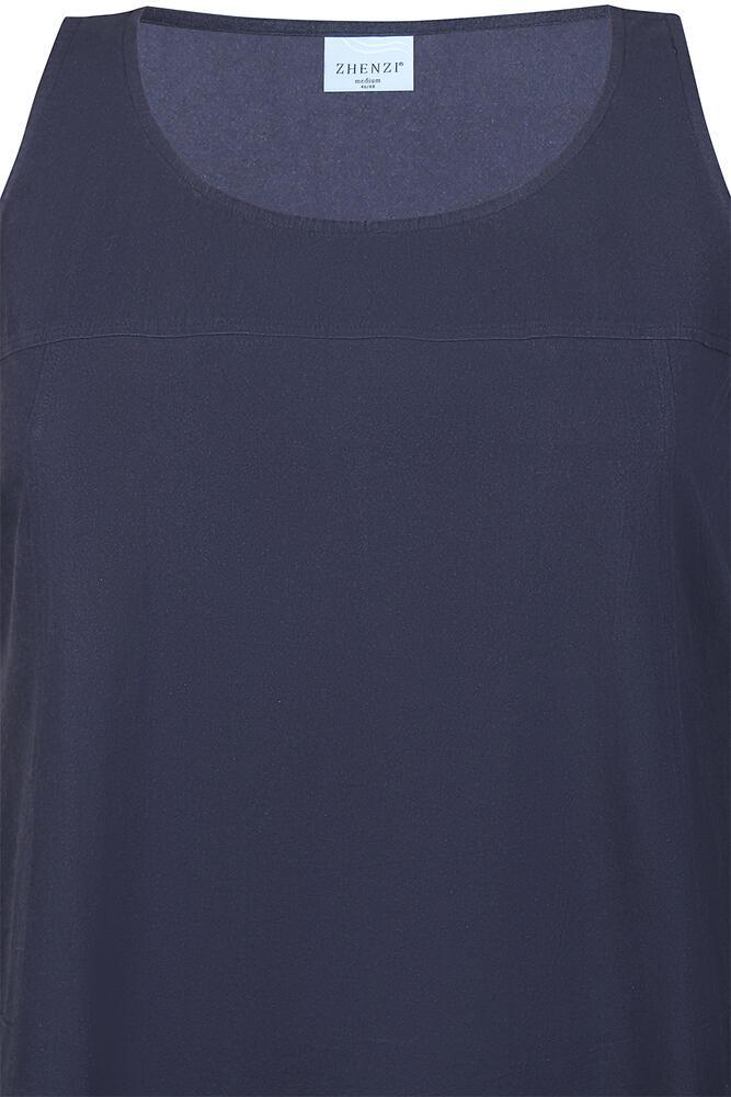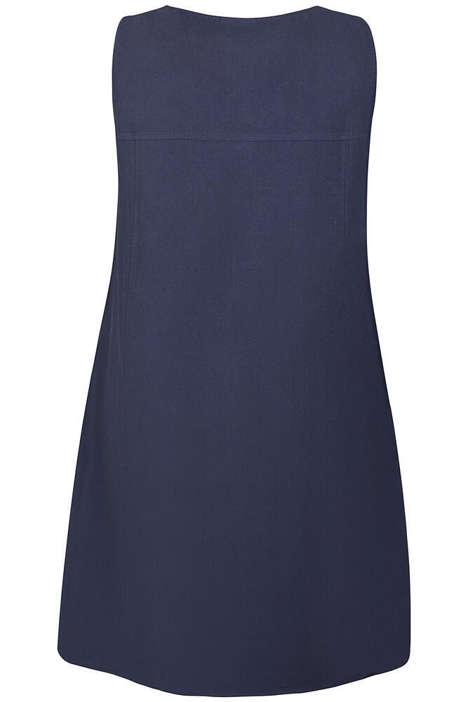 Flot plussize kjole fra Zhenzi i en smuk navy farve. Kjolen har en enkel og løs A-form, søde sidelommer og en fin rund hals, der giver et feminint twist, samt høj komfort.