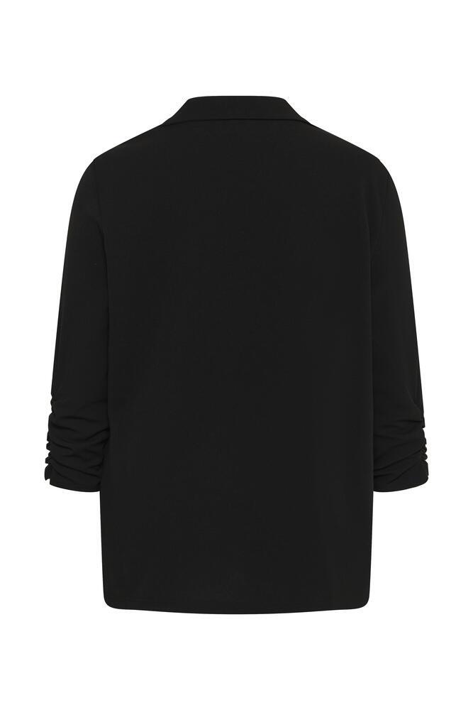 Blazer i plussize fra KAFFE Curve i en klassisk sort farve. Blazeren er skabt med klassisk krave og 3/4 ærmer med en fin rynke detalje, samt brugbare lommer.
