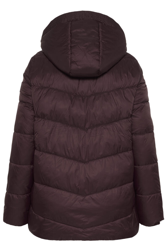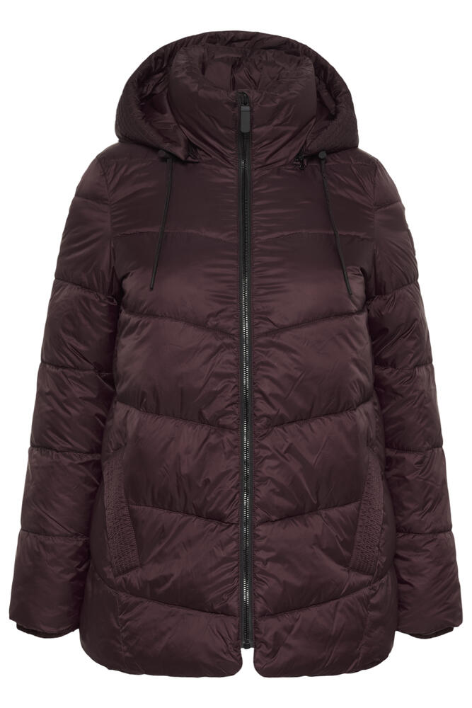 Jakken har elastikkant i ærmerne, afslappet pasform og har en horisontalt quiltet struktur.