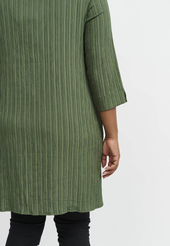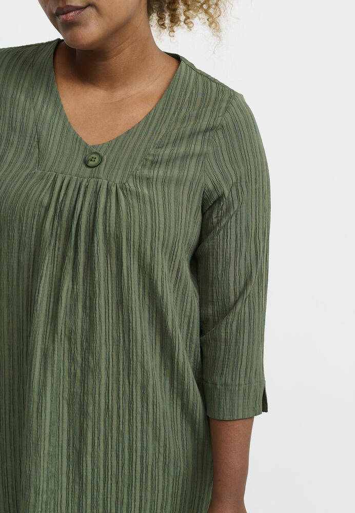 Tunikaen har rund hals med fin knap detalje, 3/4 lange ærmer og lommer i sidesømmen.