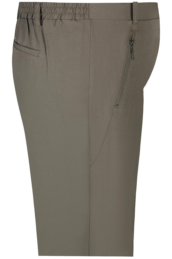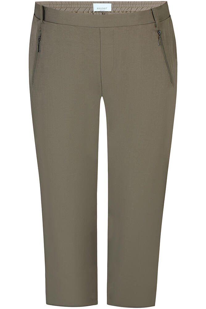 Bukserne har bred elastik i linningen og skrå lynlås lommer foran, samt pynte lommer bagpå og bæltestropper.