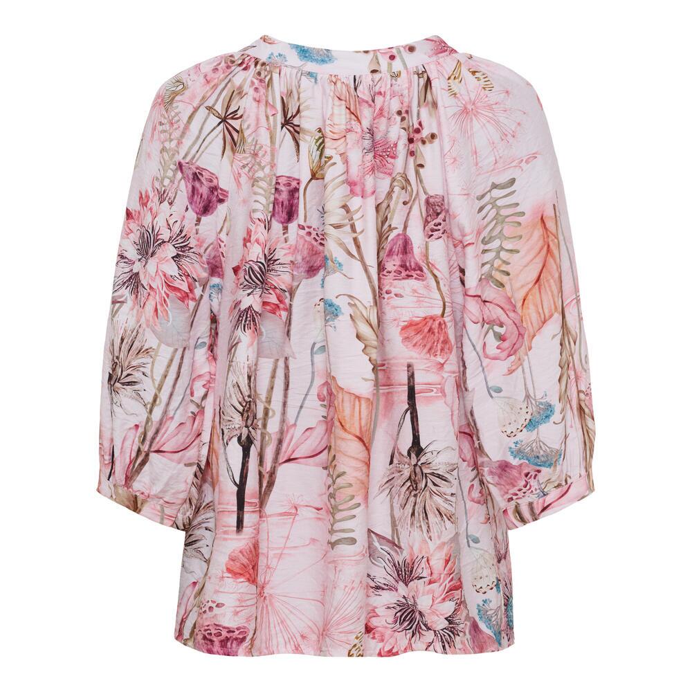 Skjorte fra Marta du Château med et farverigt blomsterprint i rosa. Skjorten har en klassisk stolpelukning med knapper samt en rund hals med let rynkedetalje, der giver et feminint og luftigt udtryk.