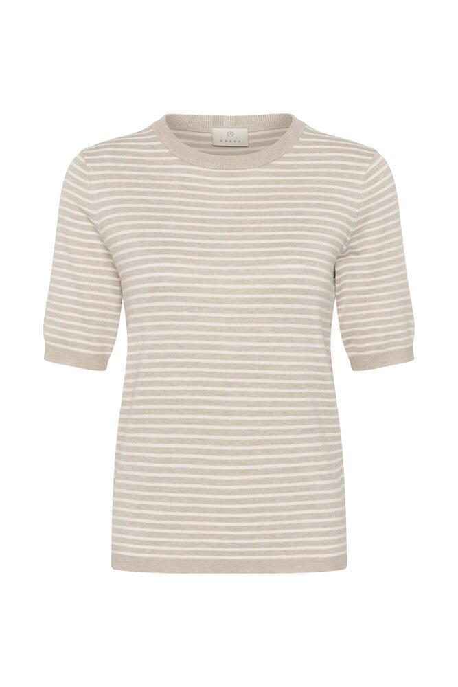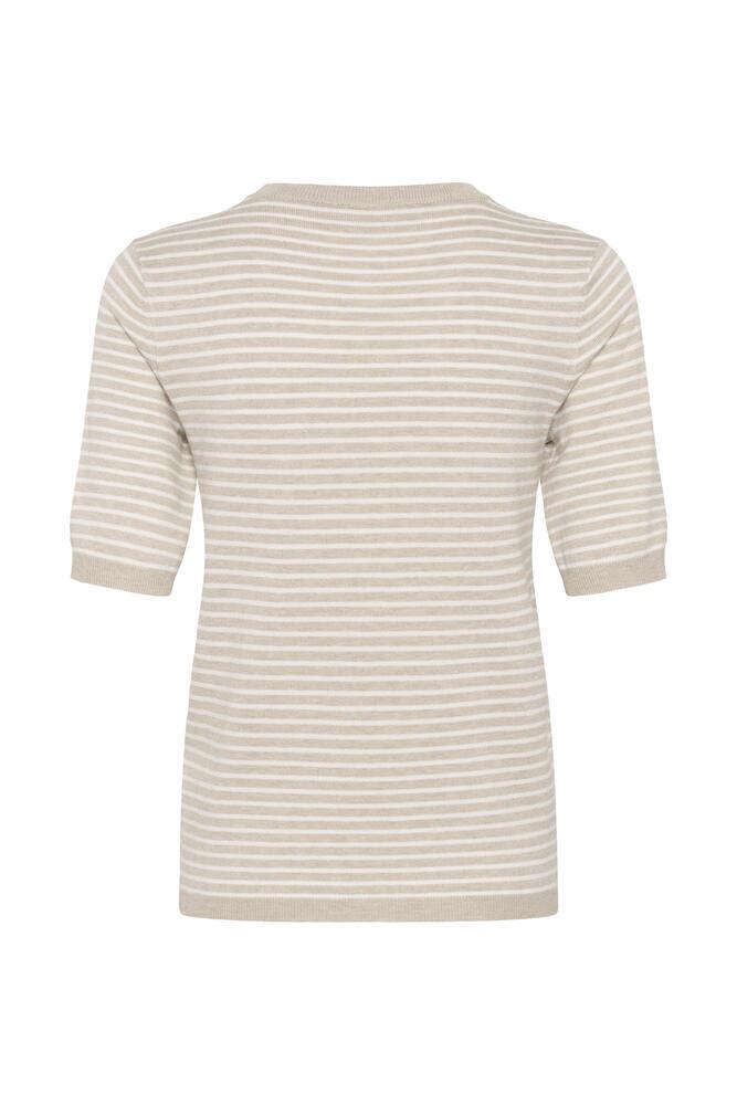 Strikket pullover fra KAFFE i et klassisk og stilrent stribet design med ribstrikkede kanter og halvlange ærmer. Pulloveren er fremstillet i en dejlig blød viskose kvalitet og er et tidløst musthave til garderoben.