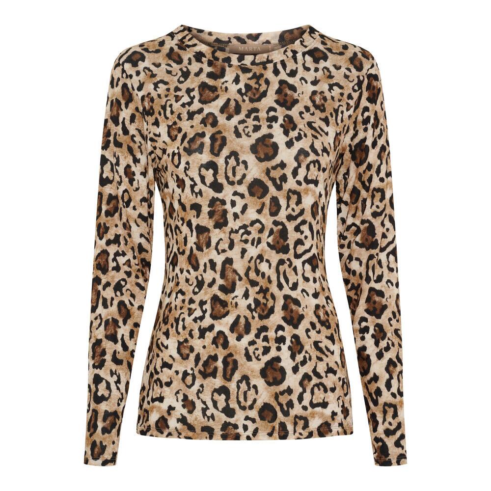 Stilfuld langærmet T-shirt fra Marta du Château i trendy leopardprint. T-shirten er lavet i en blød kvalitet, der sikrer høj komfort, samt den tætsiddende pasform, der gør den perfekt som lag-på-lag.
