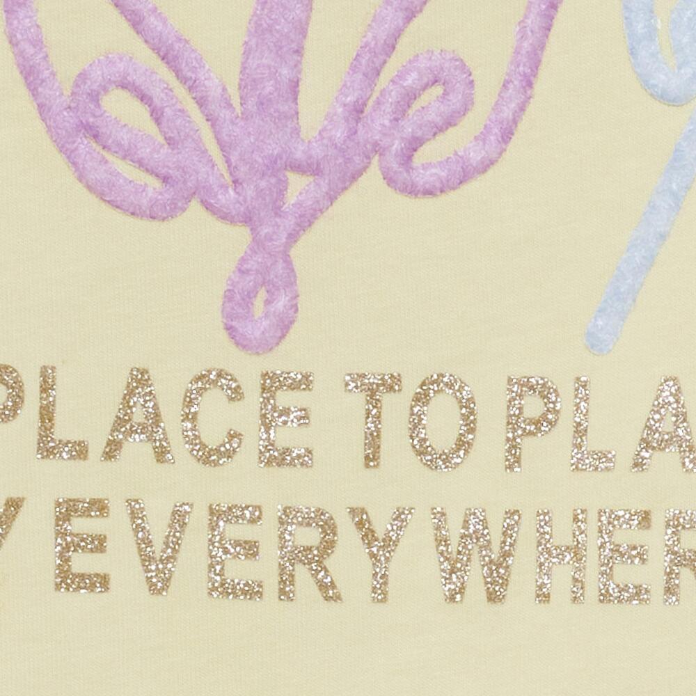 T-shirt fra Marta du Château i en sommerlig gul med en sød tekst og et smukt print. T-shirten er med klassisk rund hals og korte ærmer, perfekt til de kommende sommerdage.