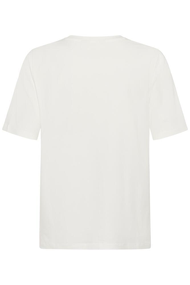 Sød og enkel T-shirt fra CULTURE i en neutral hvid nuance, kombineret med et elegant læbeprint i et farvespil af guld, grå og hvid, der skaber blikfang. Den bløde kvalitet og klassiske pasform, gør denne T-shirt til en favorit i garderoben.