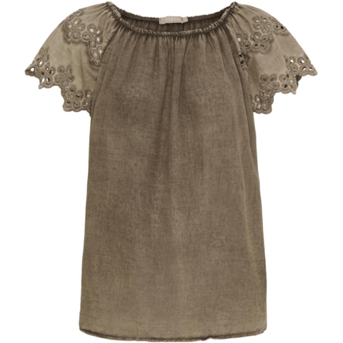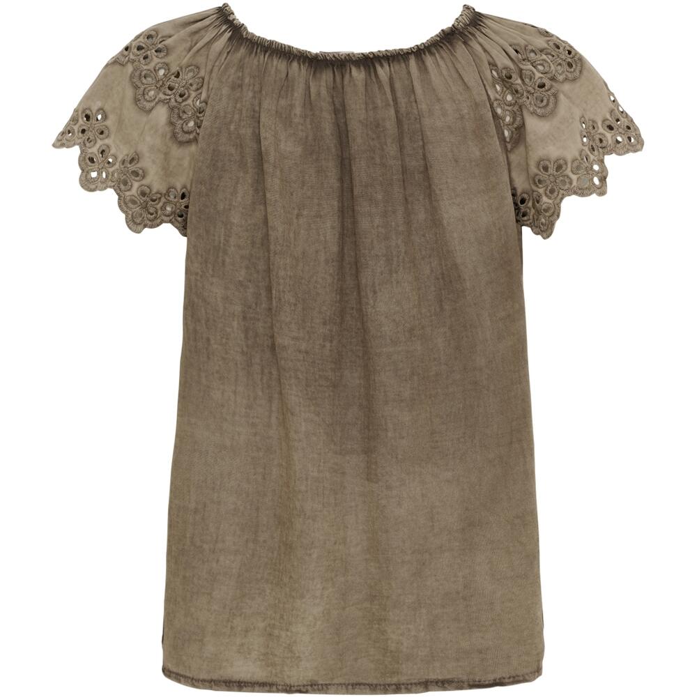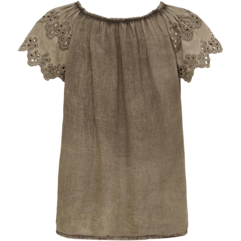 Toppen har korte ærmer med hulmønster og fine broderie detaljer og er fremstillet i 100% bomuld.